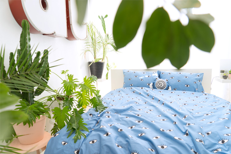 The eye-catcher of the guestroom is no longer the plants, but this cool bedding with hundreds of eyes watching over our guests in their sleep! Or when having a little snack 😉